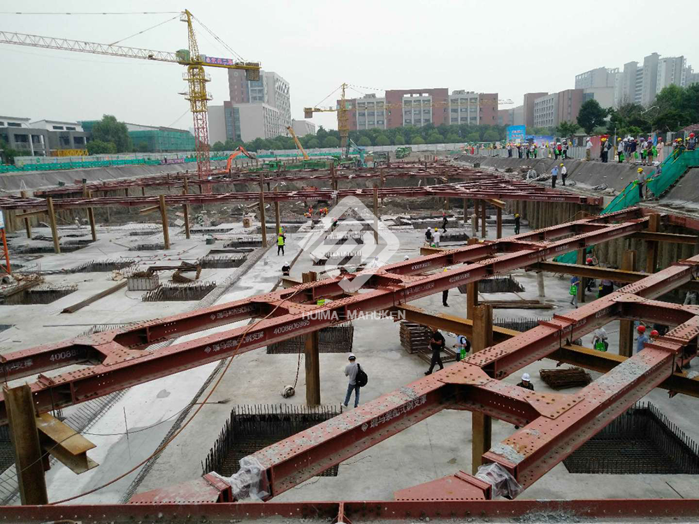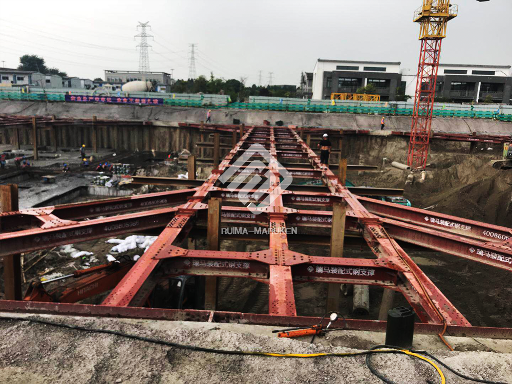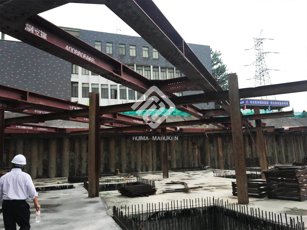 該項(xiàng)目基坑呈矩形,長(zhǎng)120米,寬約60米,深度8米;屬于組合使用角撐、對(duì)撐的一個(gè)全鋼基坑支護(hù)方式,總用鋼量為620噸。